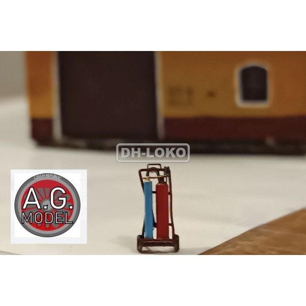 Model TT lahvového autogenu, na vozíku. Hadice, vozík, kyslík a acetylen (celá svařovací souprava)