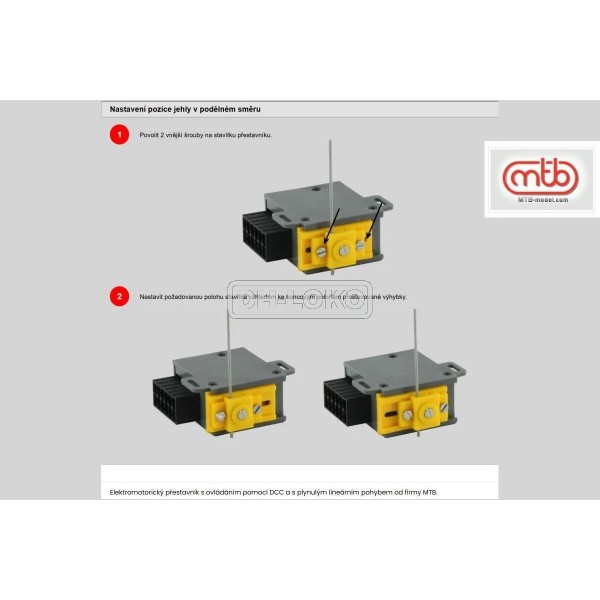 Elektromotorický přestavník s ovládáním pomocí DCC a s plynulým lineárním pohybem od firmy MTB.